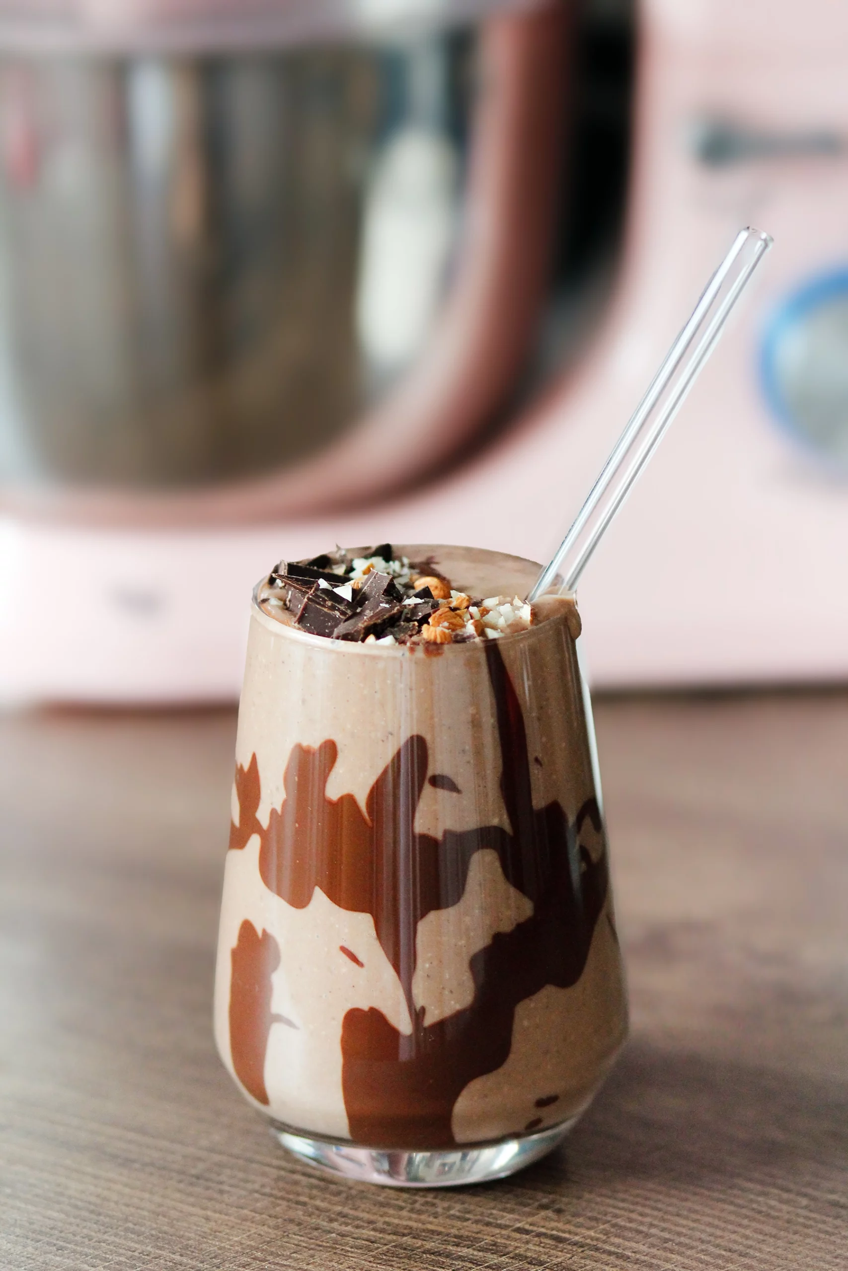 3. Kıvam çok yoğun olursa biraz daha süt ekleyin; daha kalın bir kıvam için ekstra buz küpleri veya yulaf ekleyebilirsiniz.
