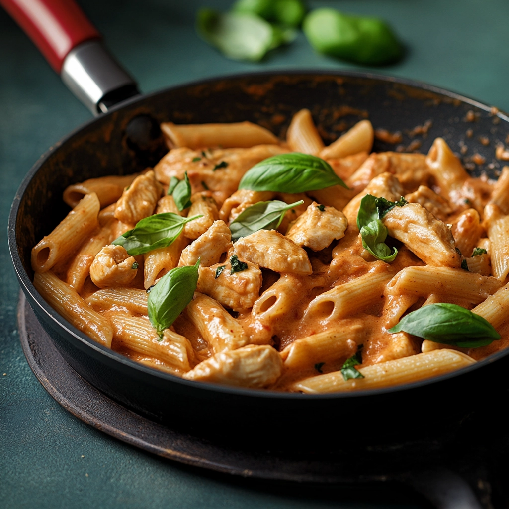 - Yemeği Birleştirin: Pişmiş makarnayı sosun bulunduğu tavaya ekleyin ve makarnanın sosla iyice karışmasını sağlayın. Dilimlenmiş tavukları ekleyin ve nazikçe karıştırın. Gerekirse sos kıvamı için biraz daha makarna suyu ekleyin.