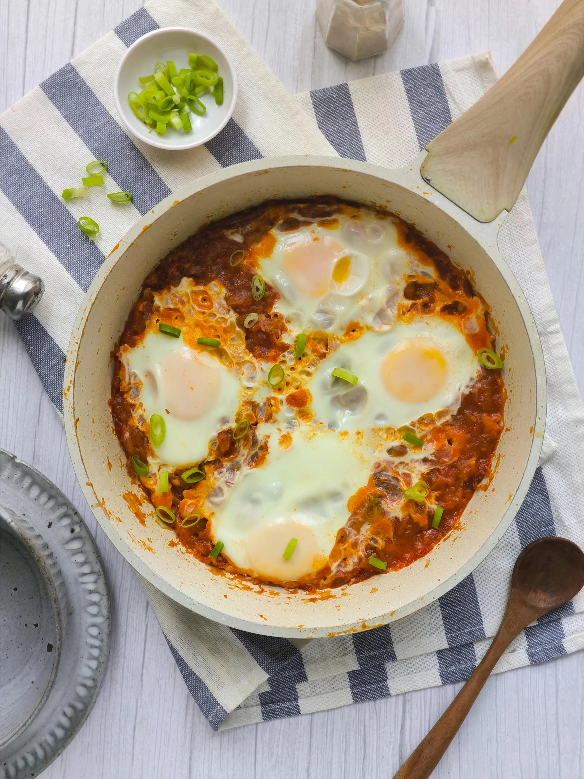 Bu yemek, benim favori shakshuka yumurtalarıma benziyor – ama yüksek proteinli bir dokunuşla. Shakshuka’nın kökleri Kuzey Afrika ve Orta Doğu mutfağına dayanır ve özellikle Tunus, İsrail ve Fas gibi ülkelerde popülerdir. Geleneksel olarak, yumurtalar baharatlı, zengin bir domates ve biber sosunda pişirilir ve genellikle doyurucu bir kahvaltı ya da aileyle paylaşmak için hafif bir akşam yemeği olarak tüketilir. Benim versiyonum shakshuka’nın ruhunu koruyor ama ekstra protein ekleyerek sizi daha uzun süre enerjik tutuyor.