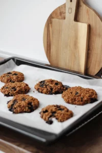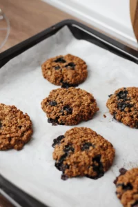 Fırından yeni çıkmış, sıcak ve yumuşak bir kurabiyenin yerini hiçbir şey tutamaz. Bu Cevizli ve Yaban Mersinli Kurabiyeler sadece lezzetli değil, aynı zamanda doğal olarak glutensiz ve vegan dostudur. Badem unu, yulaf, keten tohumu “yumurtası” ile hazırlanır ve hindistancevizi şekeri ile tatlandırılır – hem keyifli hem de besleyici bir atıştırmalık sunar. Cevizler çıtır bir zenginlik katarken, yaban mersinleri tatlı-ekşi sulu patlamalar sağlar. Benim çay saati atıştırmalığım.